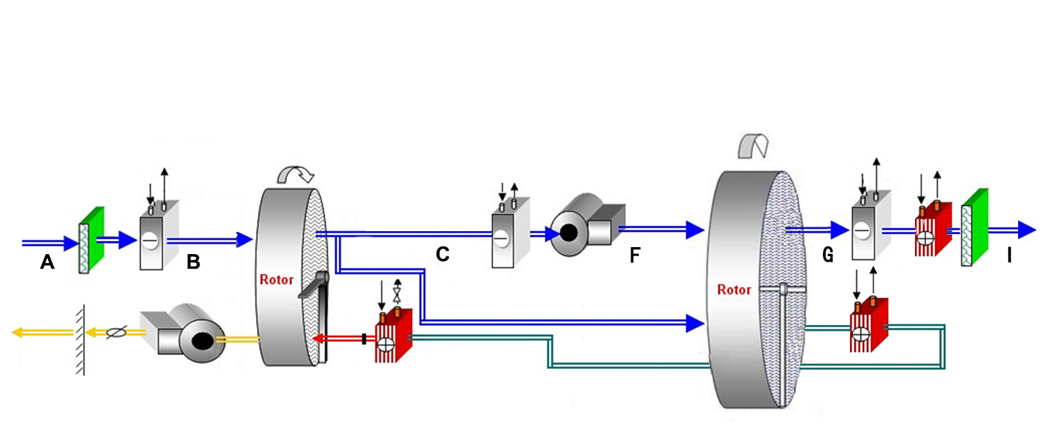 Основной принцип его работы — физическая адсорбция: ротор медленно вращается, последовательно проходя через две зоны — «зону адсорбции» и «зону регенерации».